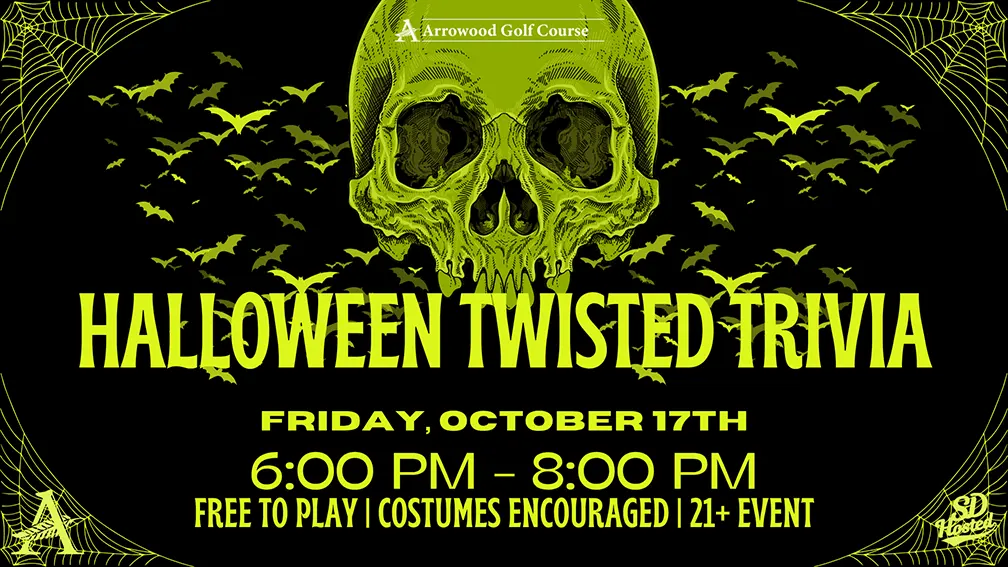 Think you can outsmart the spirits? Join us for a Halloween edition of Twisted Trivia at Arrowood! Expect bone-chilling questions, ghostly laughs, and prizes that are to die for. Costumes encouraged—because what’s a spooky showdown without a little fright-night flair? 21+ Event