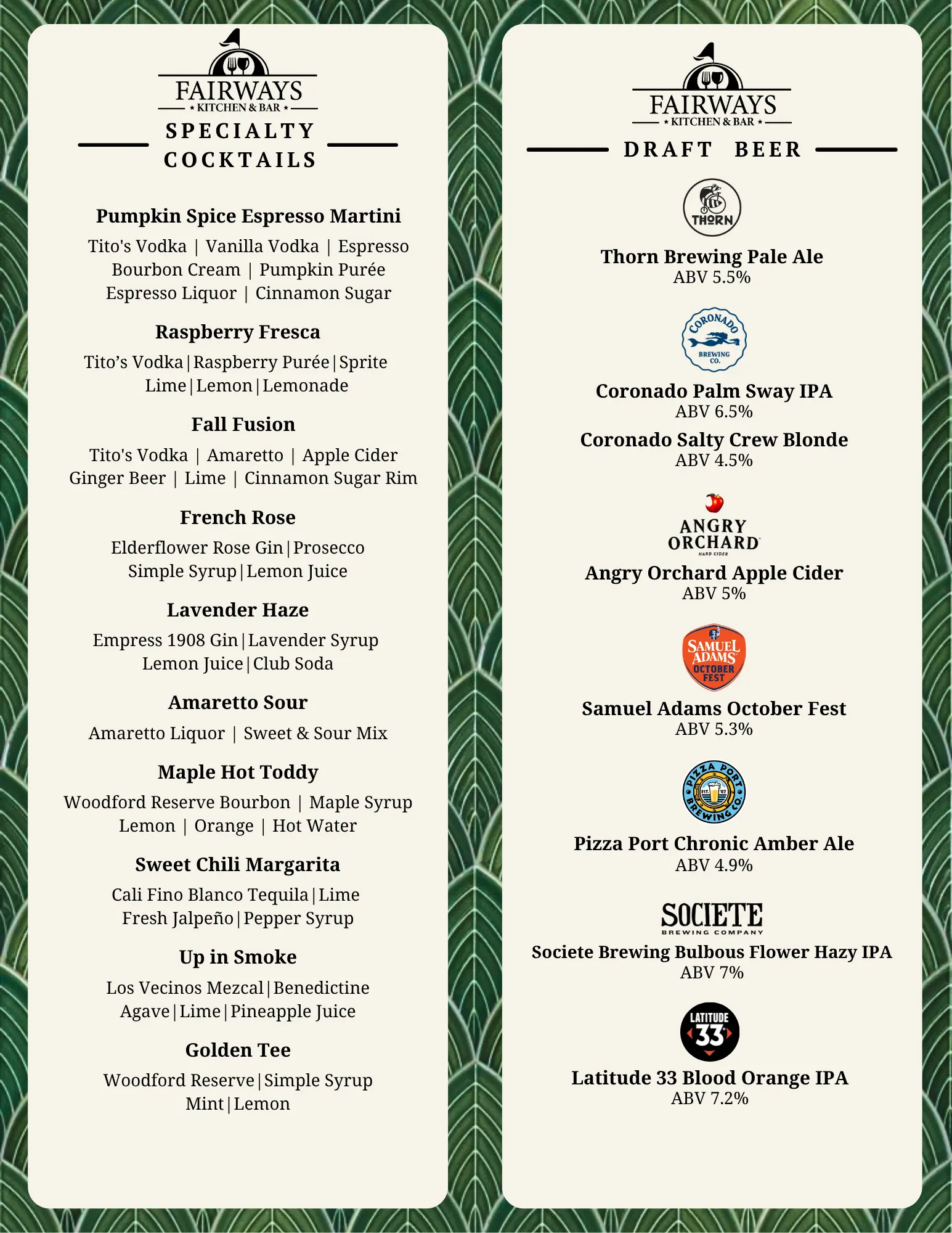 Fairways Menu